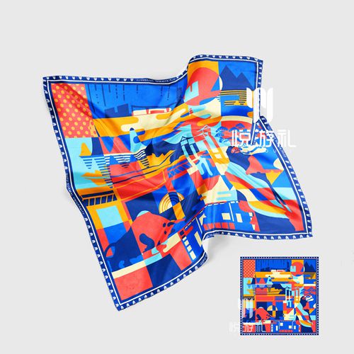 相较扇子、书签等传统文创品类,方丝巾和藻井形状契合,较大的展开面积也能给用户的想象力予以更大的呈现空间。