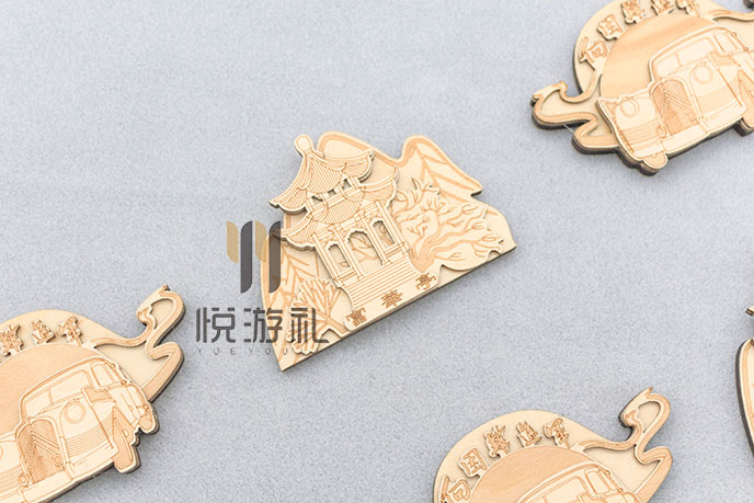 大家都会在节假日选择外出旅游,然而奈何假期时间太短,对于风光美景总是如走马观花一般,能够留下回忆的只有些许的几张照片而已。悦游希望通过纪念品定制,让旅客能够通过实物来带来一些旅途的回忆,因此悦游开发设计了一些木质的冰箱贴,其中印有武汉相关景点的线稿。因为是有木质和简笔画进行结合,整体都极具创意。