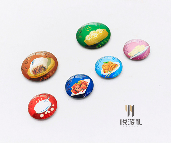 悦游礼景区文创产品冰箱贴,小巧精致,图案色彩艳丽,采用各种美食的图案印刻在上面,看到冰箱上的这些冰箱贴,让人有一种打开冰箱做一顿大餐的冲动。