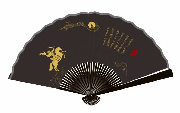 折扇自古是文人墨客所好,扇面设计结合屈原辞作元素,文案结合游客情感需求。扇面文字以石头粉人工印制,在夜晚具有荧光效果,在夜游中起到了增强活动氛围的效果。(扇面文案截取《东君》青云衣兮白霓裳,举长矢兮射天狼。操余弧兮反沦降,援北斗兮酌桂浆。撰余辔兮高驼翔,杳冥冥兮以东行。