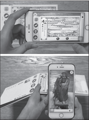 在一些旅游景区中,为了保护文物而禁止游客进入。在这样的情况下,可以利用虚拟现实 、人工智能 、语音识别等先进技术,构建虚拟的景区场景。游客可以利用虚拟现实眼镜、体感捕捉仪等装备,进入设计好的虚拟场景中,“身临其境”地参观无法深入探索的区域,加深游客对景区的了解和印象。将增强现实技术与手机应用相结合,使用手机扫一扫特制的景区建筑或文物的明信片,触发一段与卡片相对应的3D 影像并配有讲解,实现了视觉、听觉、触觉的多重体验,这种动态的展现形式,让游客切身感受到不同的旅游文化和体验 。