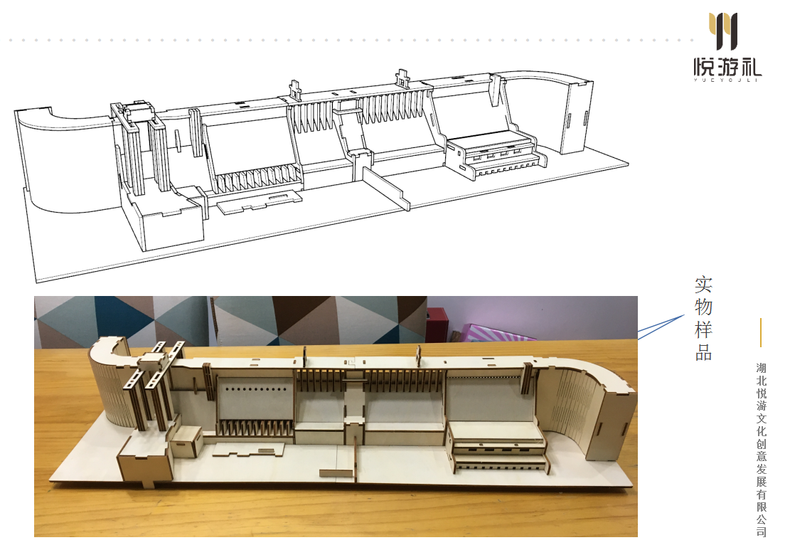 丹江口水库位于湖北省丹江口市,有着亚洲人工淡水湖、南水北调中线工程调水源头的称号,丹江口大坝是新中国成立后我国自行设计、自行建造和自行管理的以防洪为主,兼有发电、灌溉、航运、养殖等综合利用的大型水利枢纽工程。悦游礼携手湖北丹江口大坝景区设计出一系列文创产品,其中以丹江口工程建设为主题的拼装产品较为特殊。