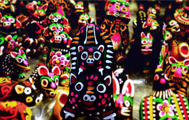 泥泥狗主要以当地的泥土为原材料,全身色彩以黑色作为底色,并由黄、赤、青、白四种颜色进行图案的绘制。图案根据造型的需要由直线、曲线和点为基础构成,线条古朴生动,有折纹、花草纹、三角纹等,有远古陶器花纹的格调。泥泥狗作为重要的非物质文化遗产,相信在未来,会有越来越多的人深入到产品开发中,为保护和传承传统文化做出贡献。